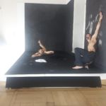 Jetzt ist mehr los im Haus. Tanz und Performance. An allen Ecken ist etwas los. Menschen in regen Gesprächen. Ein historisches Tanzerbe wird gefeiert und durch die zwischenzeitliche Stille im Raum entsteht trotz einfacher Bewegungen eine gefasste Spannung. Anderswo: Zwei Männer, mal bekleidet, mal nackt, werfen, reiben, pressen ihre schwitzenden Körper an mit Kohlestaub überzogene weiße Wände. Schemenhaft verbleiben weiß, grau ihre Abdrücke und sie selbst werden immer schwärzer. Action Noir. Fotografieren erwünscht – sendet die entstandenen Bilder an…